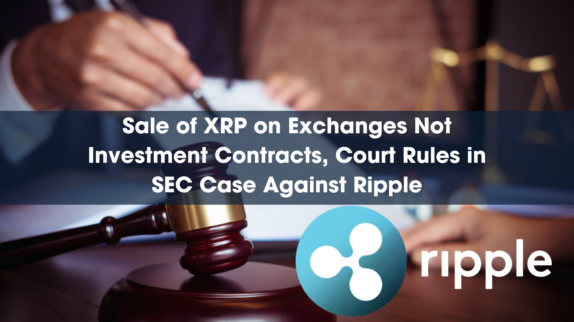 Sale of XRP on Exchanges Not Investment Contracts, Court Rules in SEC Case Against Ripple